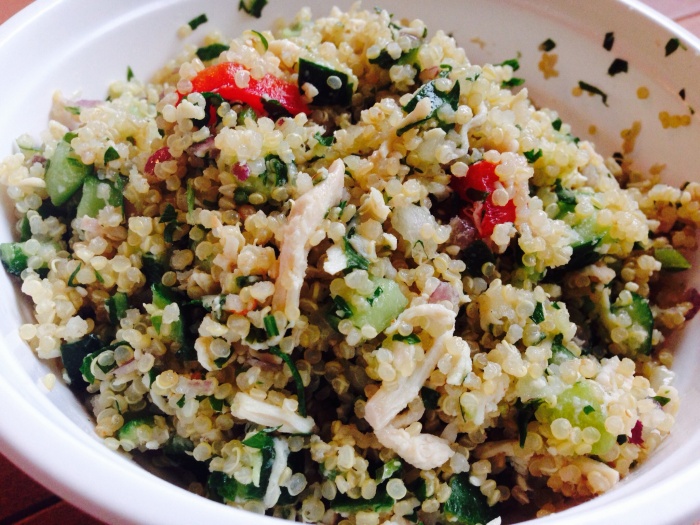 もう1つはモデルさんもご飯変わりに食べているという「キヌアチキンサラダ」です。