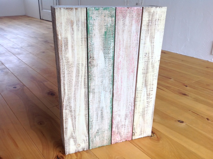 今回はティッシュを入れれるようにしてあるので洗面所などにも置いて頂けます。