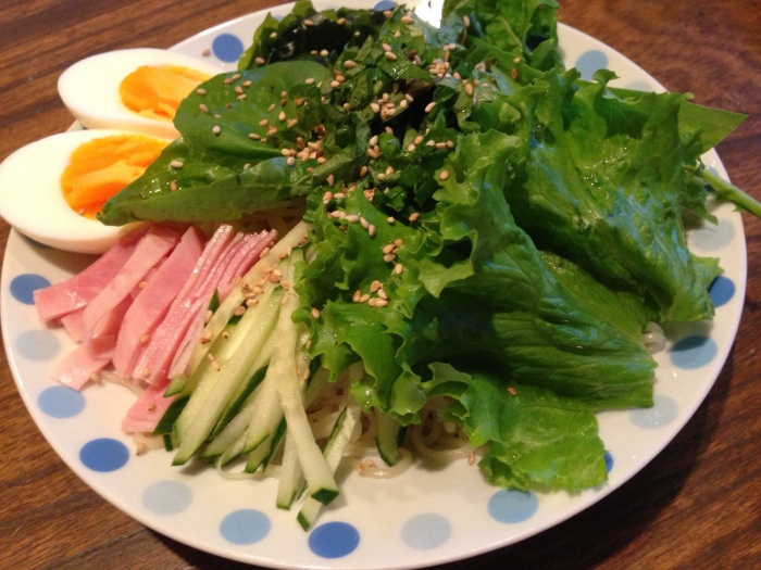 葉野菜は早速、冷やし中華の上にのせて頂きました。