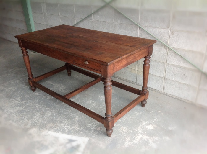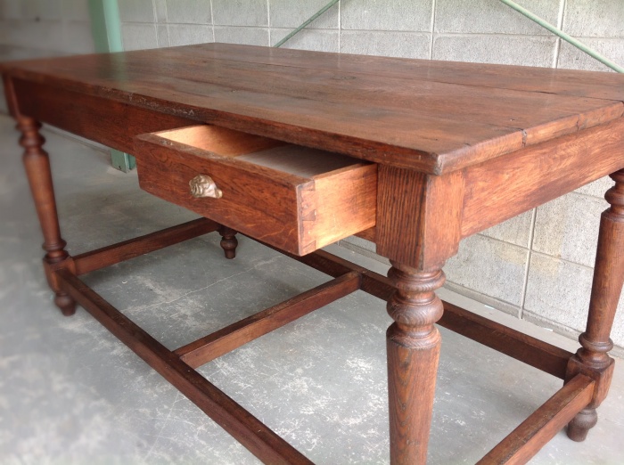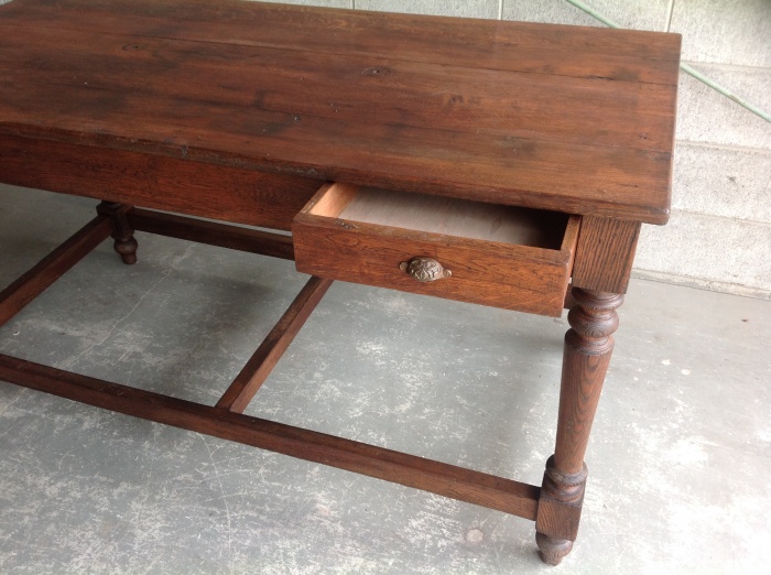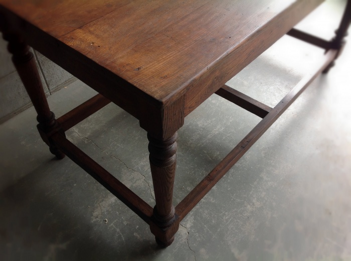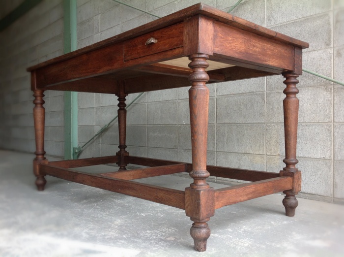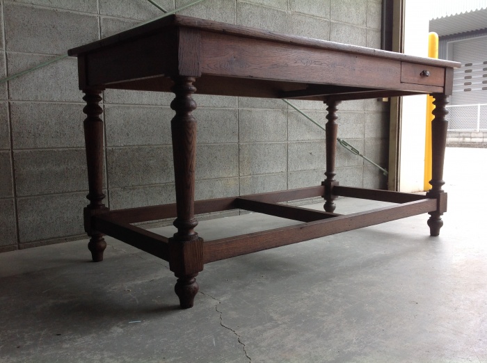 海外から輸入したアンティークテーブルで、かなり頑丈な作りをしており、ワークテーブルとして使われていた家具になります。