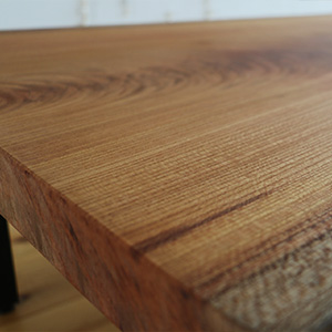 厚み50㎜もある力強い欅の木目と、シンプルなアイアンの脚との相性をお楽しみください。